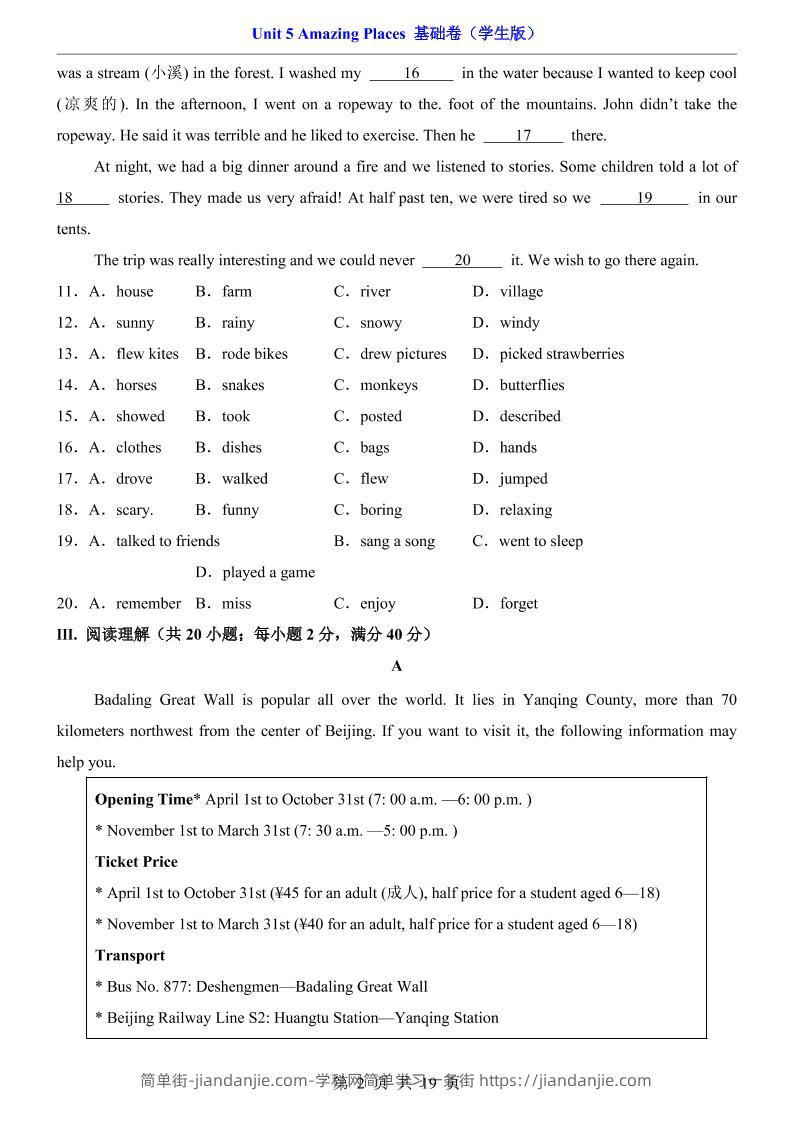 八年级上英语Unit5基础卷(仁爱版) 简单街 8天前发布 关注 私信 000 八年级上英语Unit5基础卷(仁爱版)此内容为付费资源,请付费后查看¥1.2黄金会员免费钻石会员免费立即购买您当前未登录!建议登陆后购买,可保存购买订单格式pdf页数19 页大小779.83 KB付费资源 ——预览已结束,还剩17页未读——开通会员后可免费下载高清完整文档 © 版权声明文章版权归作者所有,未经允许请勿转载。THE END初中英语喜欢就支持一下吧点赞0 分享收藏0