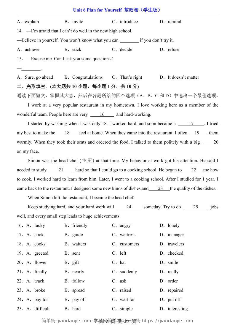 八年级上英语Unit6基础卷(人教版) 简单街 8天前发布 关注 私信 010 八年级上英语Unit6基础卷(人教版)此内容为付费资源,请付费后查看¥2.7黄金会员免费钻石会员免费立即购买您当前未登录!建议登陆后购买,可保存购买订单格式pdf页数22 页大小861.40 KB付费资源 ——预览已结束,还剩20页未读——开通会员后可免费下载高清完整文档 © 版权声明文章版权归作者所有,未经允许请勿转载。THE END初中英语喜欢就支持一下吧点赞0 分享收藏0