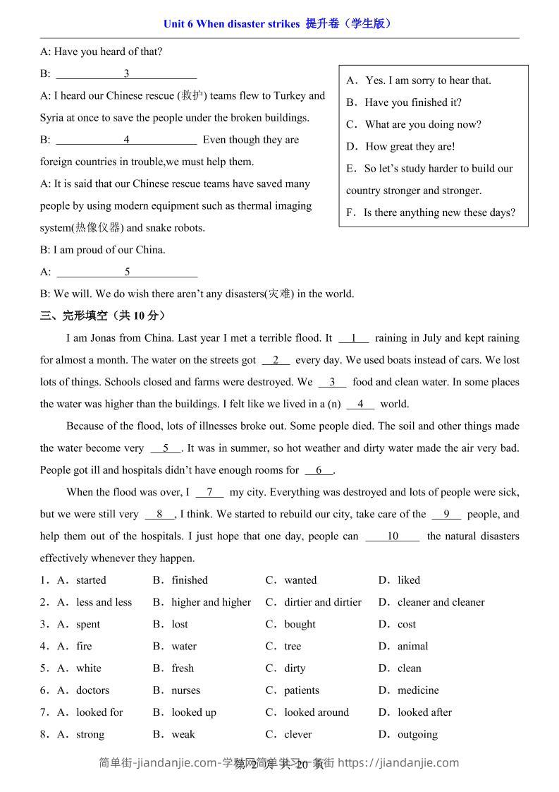 八年级上英语Unit6提升卷(外研版) 简单街 8天前发布 关注 私信 020 八年级上英语Unit6提升卷(外研版)此内容为付费资源,请付费后查看¥0.9黄金会员免费钻石会员免费立即购买您当前未登录!建议登陆后购买,可保存购买订单格式pdf页数20 页大小908.58 KB付费资源 ——预览已结束,还剩18页未读——开通会员后可免费下载高清完整文档 © 版权声明文章版权归作者所有,未经允许请勿转载。THE END初中英语喜欢就支持一下吧点赞0 分享收藏0