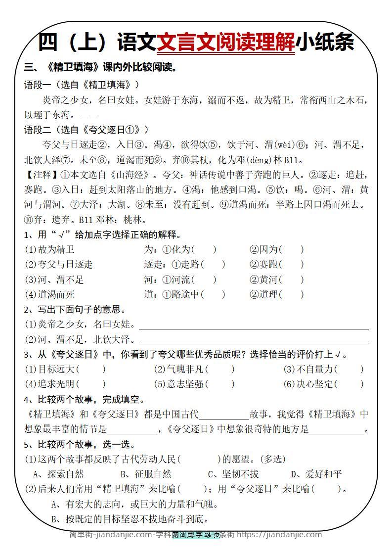 四上语文文言文阅读理解小纸条31篇(含答案24页) 简单街 4月前发布 关注 私信 030 四上语文文言文阅读理解小纸条31篇(含答案24页)此内容为付费资源,请付费后查看¥1.2黄金会员免费钻石会员免费立即购买您当前未登录!建议登陆后购买,可保存购买订单格式pdf页数24 页大小2.08 MB付费资源 ——预览已结束,还剩22页未读——开通会员后可免费下载高清完整文档 © 版权声明文章版权归作者所有,未经允许请勿转载。THE END小学语文喜欢就支持一下吧点赞0 分享收藏0