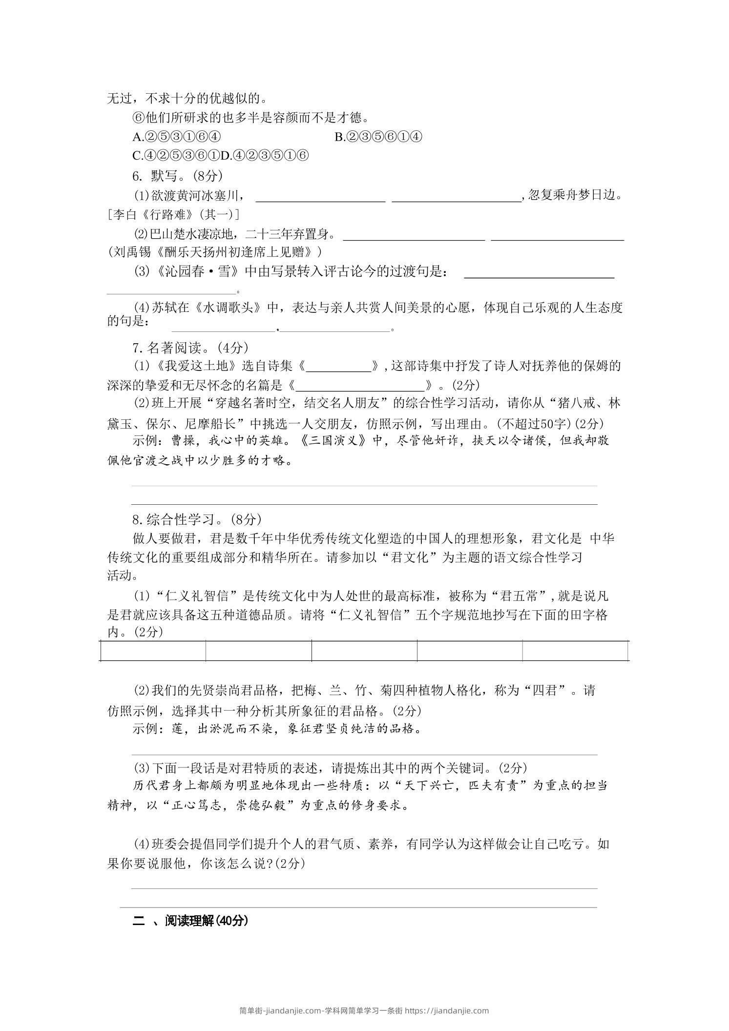 九年级上语文第二单元检测卷 简单街 4天前发布 关注 私信 010 九年级上语文第二单元检测卷此内容为付费资源,请付费后查看¥1.2黄金会员免费钻石会员免费立即购买您当前未登录!建议登陆后购买,可保存购买订单格式pdf页数8 页大小417.93 KB付费资源 ——预览已结束,还剩6页未读——开通会员后可免费下载高清完整文档 © 版权声明文章版权归作者所有,未经允许请勿转载。THE END初中语文喜欢就支持一下吧点赞0 分享收藏0