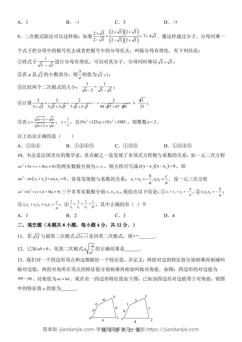 新九年级上数学第1次月考(华师版) 简单街 22小时前发布 关注 私信 030 新九年级上数学第1次月考(华师版)此内容为付费资源,请付费后查看¥2.7黄金会员免费钻石会员免费立即购买您当前未登录!建议登陆后购买,可保存购买订单格式pdf页数21 页大小984.99 KB付费资源 ——预览已结束,还剩19页未读——开通会员后可免费下载高清完整文档 © 版权声明文章版权归作者所有,未经允许请勿转载。THE END初中数学喜欢就支持一下吧点赞0 分享收藏0