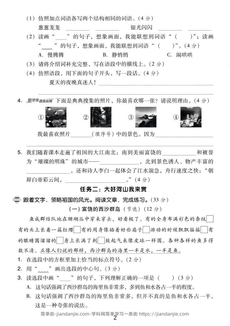 三上语文第六单元达标测试卷4(含答案5页) 简单街 6天前发布 关注 私信 020 三上语文第六单元达标测试卷4(含答案5页)此内容为付费资源,请付费后查看¥1.2黄金会员免费钻石会员免费立即购买您当前未登录!建议登陆后购买,可保存购买订单格式pdf页数5 页大小16.25 MB付费资源 ——预览已结束,还剩3页未读——开通会员后可免费下载高清完整文档 © 版权声明文章版权归作者所有,未经允许请勿转载。THE END小学语文喜欢就支持一下吧点赞0 分享收藏0