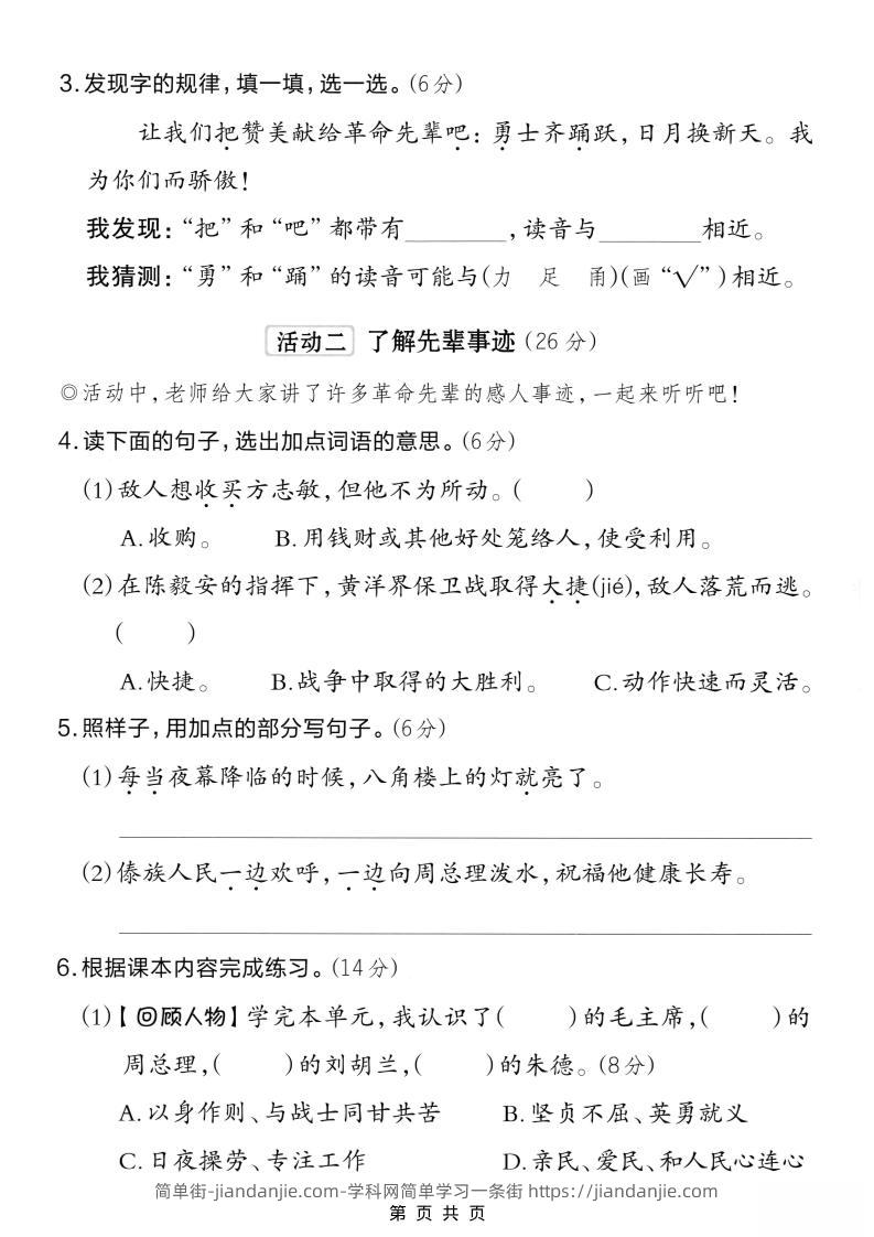 二年级上语文第六单元情景测试卷1 简单街 6天前发布 关注 私信 030 二年级上语文第六单元情景测试卷1此内容为付费资源,请付费后查看¥2.7黄金会员免费钻石会员免费立即购买您当前未登录!建议登陆后购买,可保存购买订单格式pdf页数5 页大小6.42 MB付费资源 ——预览已结束,还剩3页未读——开通会员后可免费下载高清完整文档 © 版权声明文章版权归作者所有,未经允许请勿转载。THE END小学语文喜欢就支持一下吧点赞0 分享收藏0