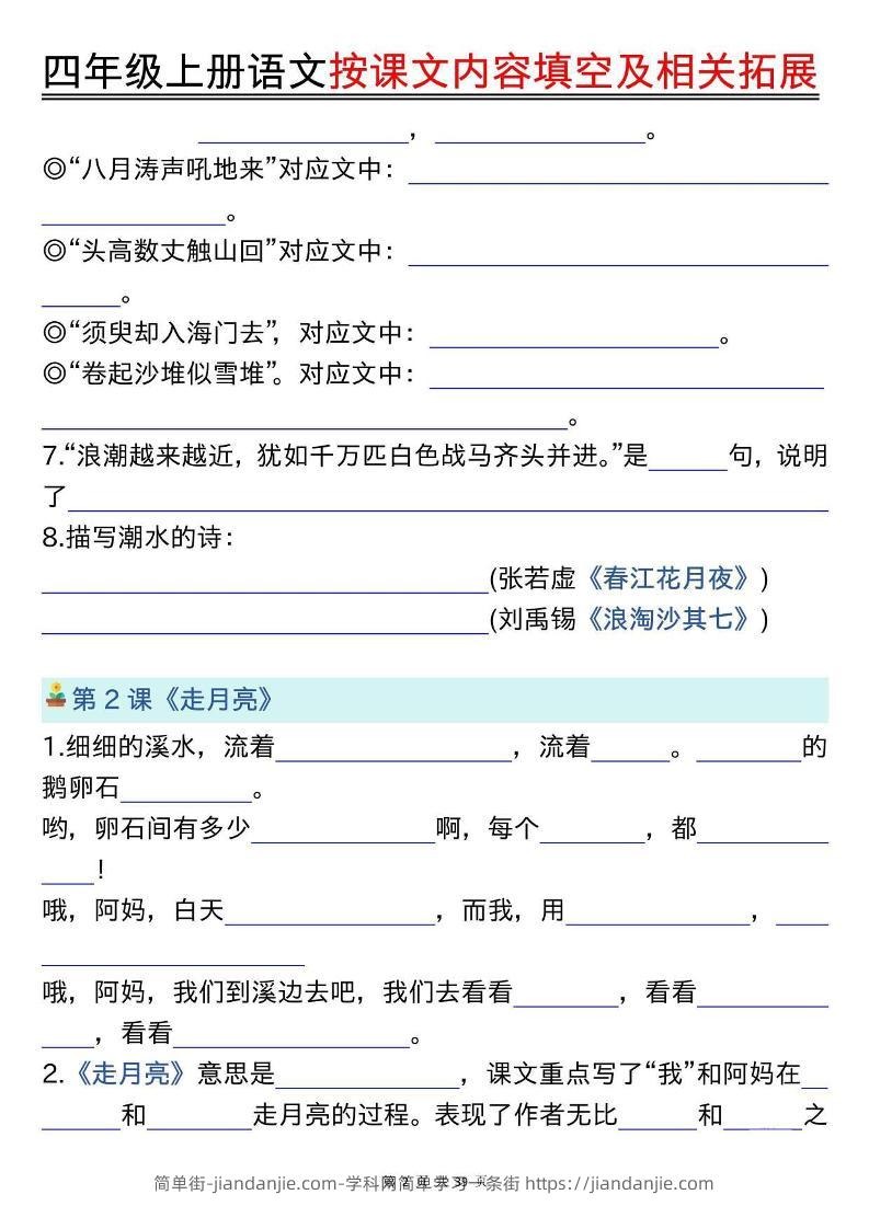 四上语文按课文内容填空及相关拓展(空白版)期中期末常考题型39页 简单街 3月前发布 关注 私信 020 四上语文按课文内容填空及相关拓展(空白版)期中期末常考题型39页此内容为付费资源,请付费后查看¥0.9黄金会员免费钻石会员免费立即购买您当前未登录!建议登陆后购买,可保存购买订单格式pdf页数39 页大小5.60 MB付费资源 ——预览已结束,还剩37页未读——开通会员后可免费下载高清完整文档 © 版权声明文章版权归作者所有,未经允许请勿转载。THE END小学语文喜欢就支持一下吧点赞0 分享收藏0