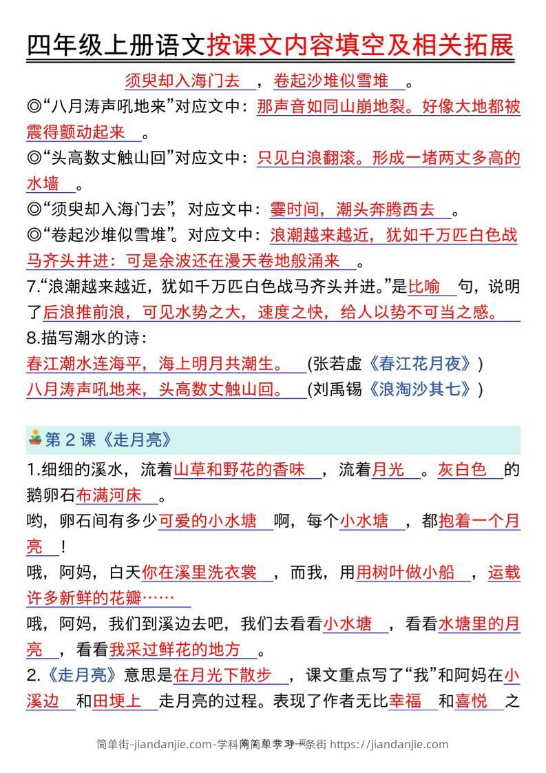 四上语文按课文内容填空及相关拓展(答案版)期中期末常考题型39页 简单街 1月前发布 关注 私信 020 四上语文按课文内容填空及相关拓展(答案版)期中期末常考题型39页此内容为付费资源,请付费后查看¥2.7黄金会员免费钻石会员免费立即购买您当前未登录!建议登陆后购买,可保存购买订单格式pdf页数39 页大小35.10 MB付费资源 ——预览已结束,还剩37页未读——开通会员后可免费下载高清完整文档 © 版权声明文章版权归作者所有,未经允许请勿转载。THE END小学语文喜欢就支持一下吧点赞0 分享收藏0