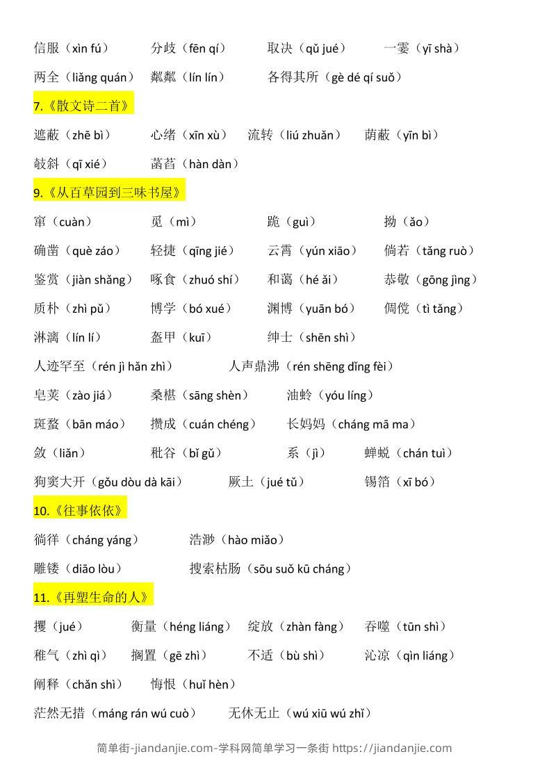 七年级上语文生字词汇总 简单街 3天前发布 关注 私信 000 七年级上语文生字词汇总此内容为付费资源,请付费后查看¥0.9黄金会员免费钻石会员免费立即购买您当前未登录!建议登陆后购买,可保存购买订单格式pdf页数5 页大小190.32 KB付费资源 ——预览已结束,还剩3页未读——开通会员后可免费下载高清完整文档 © 版权声明文章版权归作者所有,未经允许请勿转载。THE END初中语文喜欢就支持一下吧点赞0 分享收藏0
