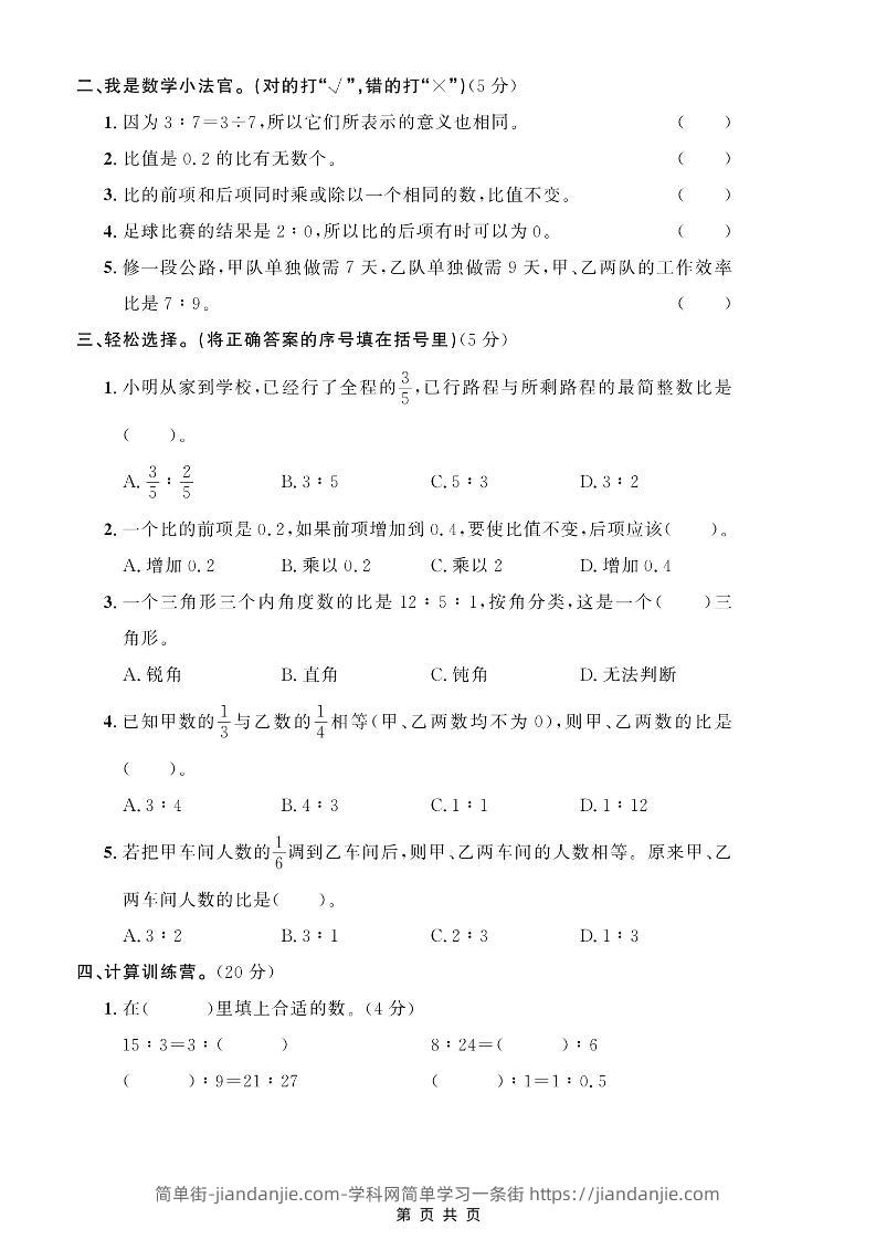 五年级上数学第七单元测试卷《青岛54版》 简单街 3月前发布 关注 私信 030 五年级上数学第七单元测试卷《青岛54版》此内容为付费资源,请付费后查看¥1.5黄金会员免费钻石会员免费立即购买您当前未登录!建议登陆后购买,可保存购买订单格式pdf页数5 页大小4.25 MB付费资源 ——预览已结束,还剩3页未读——开通会员后可免费下载高清完整文档 © 版权声明文章版权归作者所有,未经允许请勿转载。THE END小学数学喜欢就支持一下吧点赞0 分享收藏0