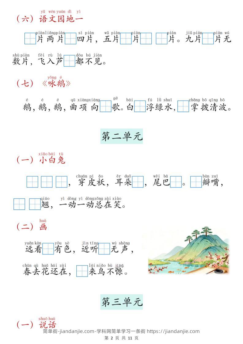 新一上语文课文内容填空专项练习(11页) 简单街 1月前发布 关注 私信 030 新一上语文课文内容填空专项练习(11页)此内容为付费资源,请付费后查看¥2.7黄金会员免费钻石会员免费立即购买您当前未登录!建议登陆后购买,可保存购买订单格式pdf页数11 页大小10.85 MB付费资源 ——预览已结束,还剩9页未读——开通会员后可免费下载高清完整文档 © 版权声明文章版权归作者所有,未经允许请勿转载。THE END小学语文喜欢就支持一下吧点赞0 分享收藏0