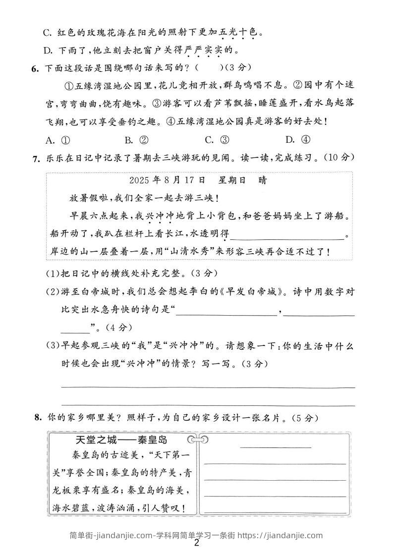 三年级上语文第六单元拔尖测试卷3 简单街 1月前发布 关注 私信 020 三年级上语文第六单元拔尖测试卷3此内容为付费资源,请付费后查看¥1.5黄金会员免费钻石会员免费立即购买您当前未登录!建议登陆后购买,可保存购买订单格式pdf页数5 页大小1.22 MB付费资源 ——预览已结束,还剩3页未读——开通会员后可免费下载高清完整文档 © 版权声明文章版权归作者所有,未经允许请勿转载。THE END小学语文喜欢就支持一下吧点赞0 分享收藏0