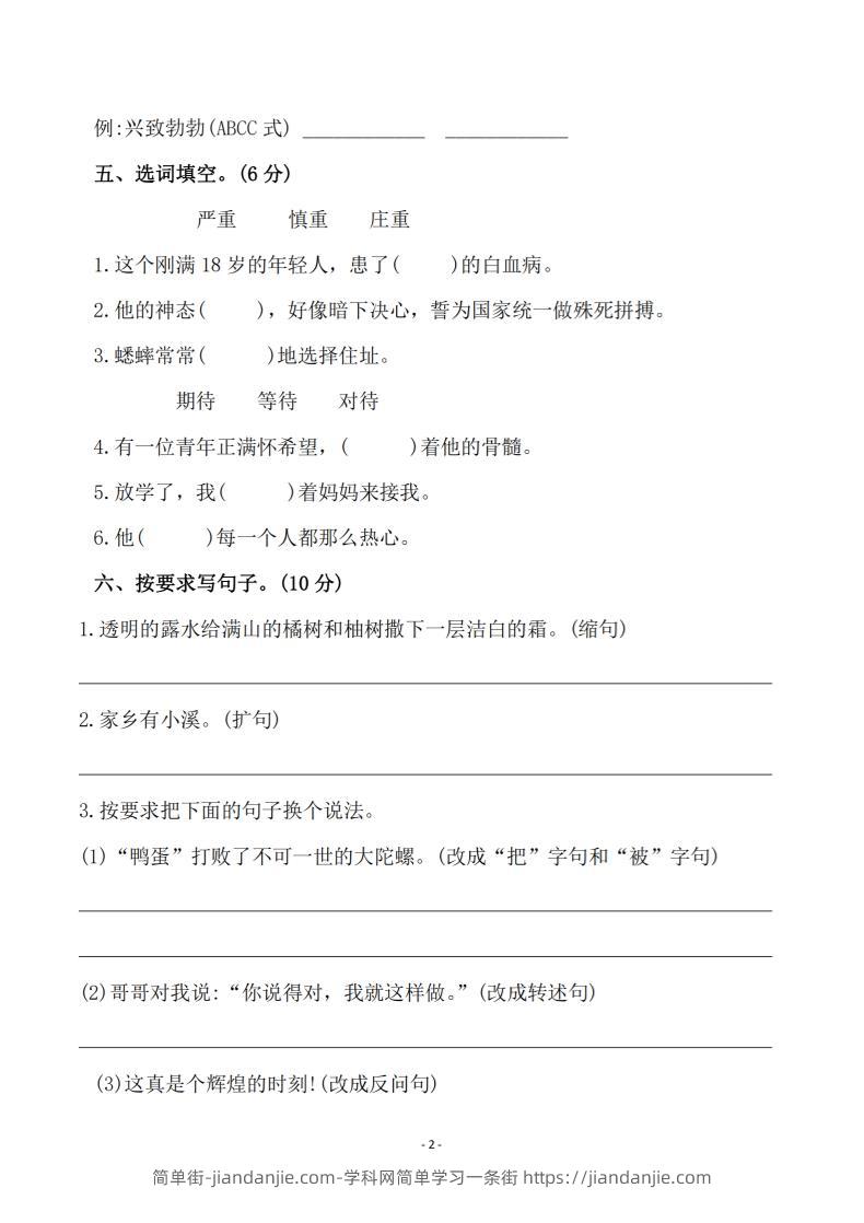 四年级上语文第六单元测试卷1 简单街 1月前发布 关注 私信 010 四年级上语文第六单元测试卷1此内容为付费资源,请付费后查看¥2.7黄金会员免费钻石会员免费立即购买您当前未登录!建议登陆后购买,可保存购买订单格式pdf页数6 页大小1.78 MB付费资源 ——预览已结束,还剩4页未读——开通会员后可免费下载高清完整文档 © 版权声明文章版权归作者所有,未经允许请勿转载。THE END小学语文喜欢就支持一下吧点赞0 分享收藏0