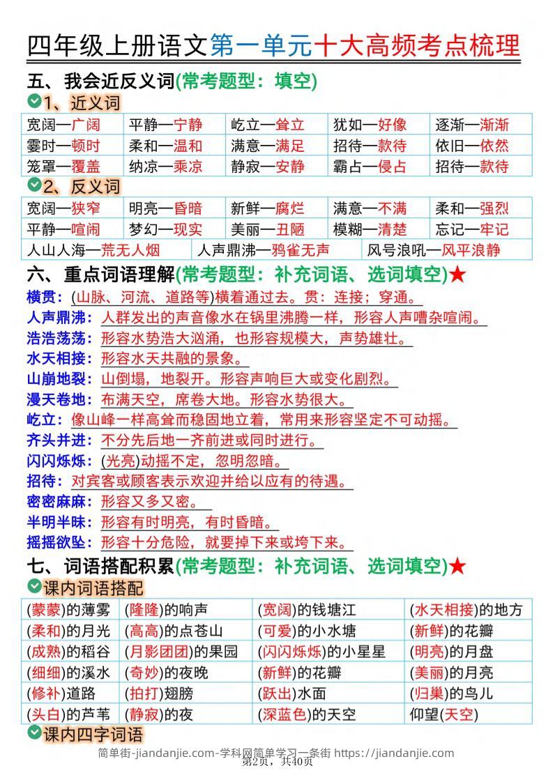 四上语文1-8单元十大高频考点梳理(40页) 简单街 3月前发布 关注 私信 030 四上语文1-8单元十大高频考点梳理(40页)此内容为付费资源,请付费后查看¥0.9黄金会员免费钻石会员免费立即购买您当前未登录!建议登陆后购买,可保存购买订单格式pdf页数40 页大小20.47 MB付费资源 ——预览已结束,还剩38页未读——开通会员后可免费下载高清完整文档 © 版权声明文章版权归作者所有,未经允许请勿转载。THE END小学语文喜欢就支持一下吧点赞0 分享收藏0