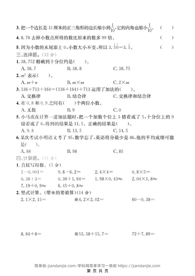 四年级上数学数与代数专项检测卷2《青岛54版》 简单街 3月前发布 关注 私信 040 四年级上数学数与代数专项检测卷2《青岛54版》此内容为付费资源,请付费后查看¥1.5黄金会员免费钻石会员免费立即购买您当前未登录!建议登陆后购买,可保存购买订单格式pdf页数5 页大小1.83 MB付费资源 ——预览已结束,还剩3页未读——开通会员后可免费下载高清完整文档 © 版权声明文章版权归作者所有,未经允许请勿转载。THE END小学数学喜欢就支持一下吧点赞0 分享收藏0