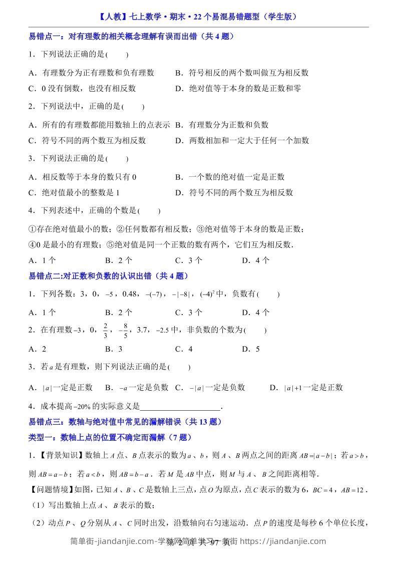 七年级上数学期末复习22个易混易错题型(人教版) 简单街 14小时前发布 关注 私信 000 七年级上数学期末复习22个易混易错题型(人教版)此内容为付费资源,请付费后查看¥2.7黄金会员免费钻石会员免费立即购买您当前未登录!建议登陆后购买,可保存购买订单格式pdf页数97 页大小2.37 MB付费资源 ——预览已结束,还剩95页未读——开通会员后可免费下载高清完整文档 © 版权声明文章版权归作者所有,未经允许请勿转载。THE END初中数学喜欢就支持一下吧点赞0 分享收藏0