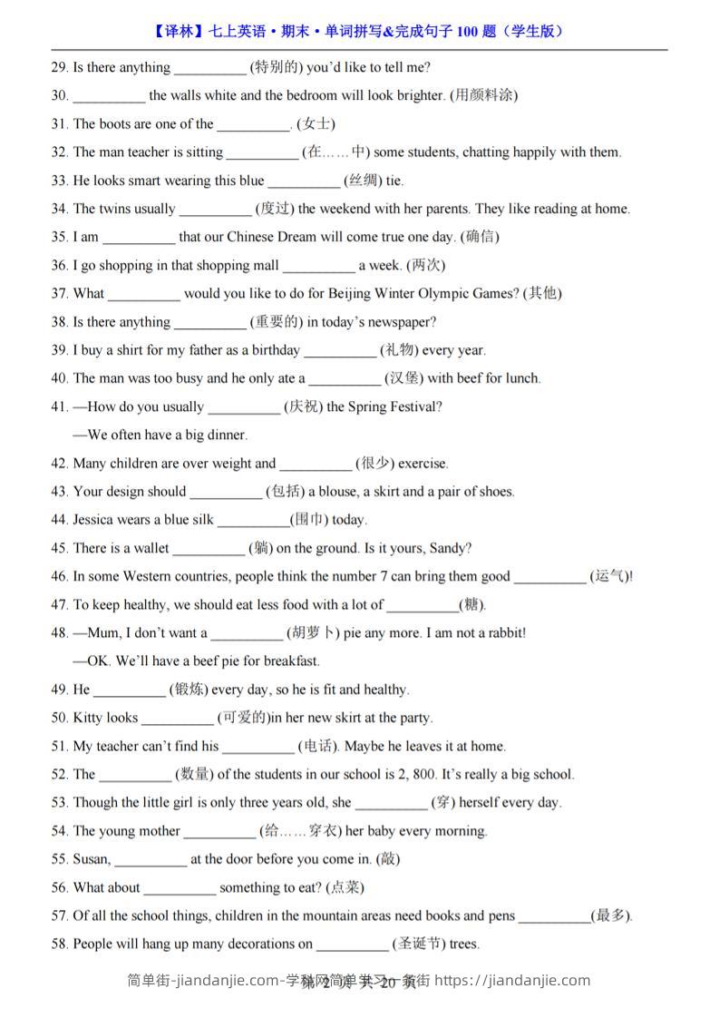 七年级上英语期末单词拼写完成句子100题(译林版) 简单街 1月前发布 关注 私信 010 七年级上英语期末单词拼写完成句子100题(译林版)此内容为付费资源,请付费后查看¥2.7黄金会员免费钻石会员免费立即购买您当前未登录!建议登陆后购买,可保存购买订单格式pdf页数20 页大小7.42 MB付费资源 ——预览已结束,还剩18页未读——开通会员后可免费下载高清完整文档 © 版权声明文章版权归作者所有,未经允许请勿转载。THE END初中英语喜欢就支持一下吧点赞0 分享收藏0