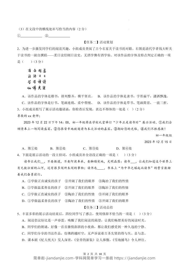 七年级上语文期末模拟卷02 简单街 1月前发布 关注 私信 010 七年级上语文期末模拟卷02此内容为付费资源,请付费后查看¥2.7黄金会员免费钻石会员免费立即购买您当前未登录!建议登陆后购买,可保存购买订单格式pdf页数18 页大小587.95 KB付费资源 ——预览已结束,还剩16页未读——开通会员后可免费下载高清完整文档 © 版权声明文章版权归作者所有,未经允许请勿转载。THE END初中语文喜欢就支持一下吧点赞0 分享收藏0