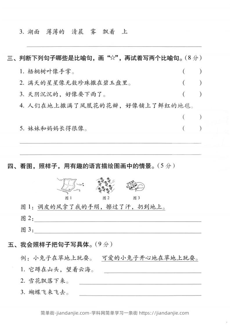 二年级上语文句子专项练习卷 简单街 3月前发布 关注 私信 010 二年级上语文句子专项练习卷此内容为付费资源,请付费后查看¥1.5黄金会员免费钻石会员免费立即购买您当前未登录!建议登陆后购买,可保存购买订单格式pdf页数5 页大小3.79 MB付费资源 ——预览已结束,还剩3页未读——开通会员后可免费下载高清完整文档 © 版权声明文章版权归作者所有,未经允许请勿转载。THE END小学语文喜欢就支持一下吧点赞0 分享收藏0