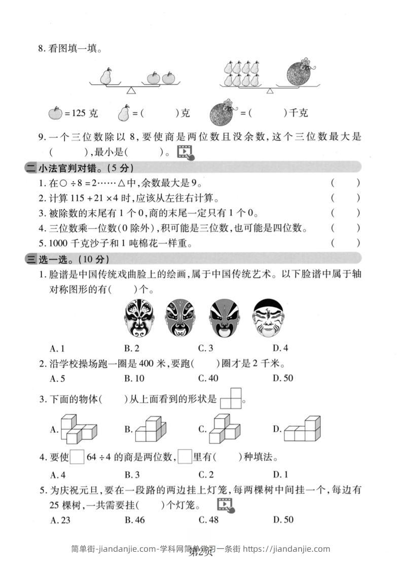三年级上数学期末拔尖测试卷1《苏教版》 简单街 1月前发布 关注 私信 010 三年级上数学期末拔尖测试卷1《苏教版》此内容为付费资源,请付费后查看¥1.2黄金会员免费钻石会员免费立即购买您当前未登录!建议登陆后购买,可保存购买订单格式pdf页数5 页大小3.60 MB付费资源 ——预览已结束,还剩3页未读——开通会员后可免费下载高清完整文档 © 版权声明文章版权归作者所有,未经允许请勿转载。THE END小学数学喜欢就支持一下吧点赞0 分享收藏0
