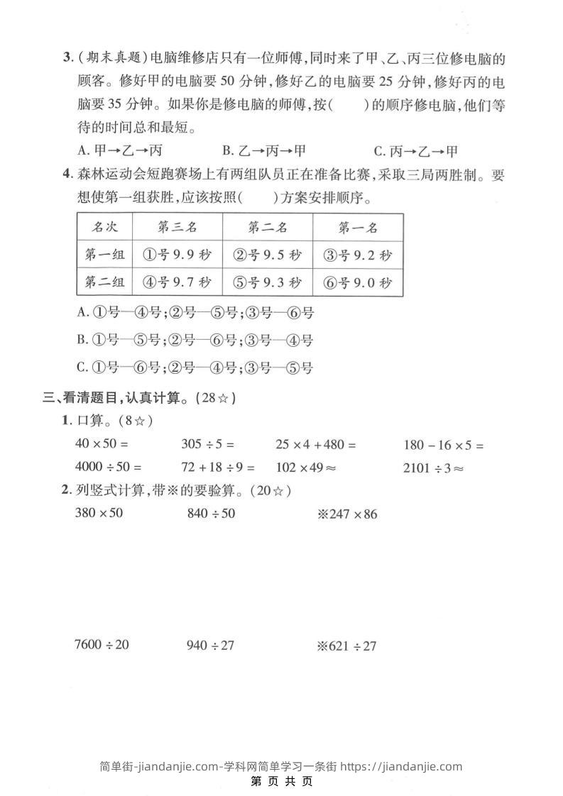 四年级上数学第七、八单元模拟测试卷《人教版》 简单街 1月前发布 关注 私信 010 四年级上数学第七、八单元模拟测试卷《人教版》此内容为付费资源,请付费后查看¥1.2黄金会员免费钻石会员免费立即购买您当前未登录!建议登陆后购买,可保存购买订单格式pdf页数5 页大小4.77 MB付费资源 ——预览已结束,还剩3页未读——开通会员后可免费下载高清完整文档 © 版权声明文章版权归作者所有,未经允许请勿转载。THE END小学数学喜欢就支持一下吧点赞0 分享收藏0