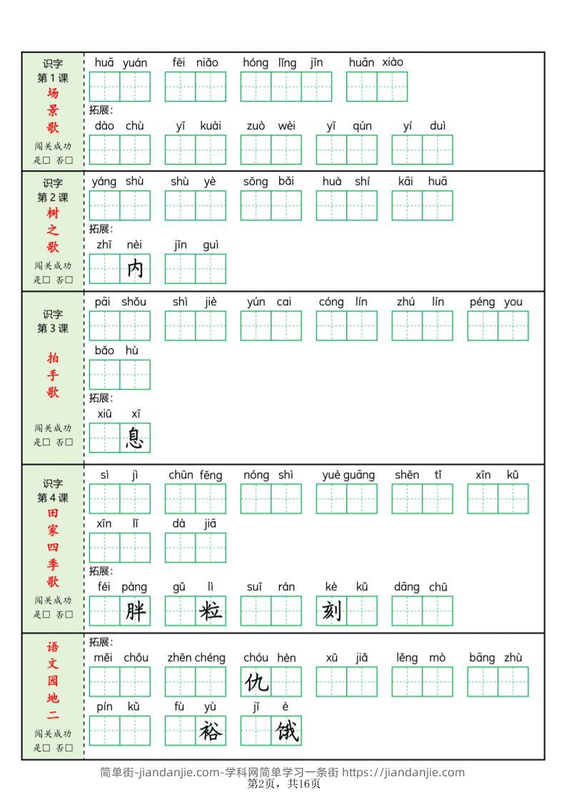 新二上语文每课词语闯关训练(含答案16页) 简单街 3月前发布 关注 私信 010 新二上语文每课词语闯关训练(含答案16页)此内容为付费资源,请付费后查看¥1.5黄金会员免费钻石会员免费立即购买您当前未登录!建议登陆后购买,可保存购买订单格式pdf页数16 页大小8.52 MB付费资源 ——预览已结束,还剩14页未读——开通会员后可免费下载高清完整文档 © 版权声明文章版权归作者所有,未经允许请勿转载。THE END小学语文喜欢就支持一下吧点赞0 分享收藏0