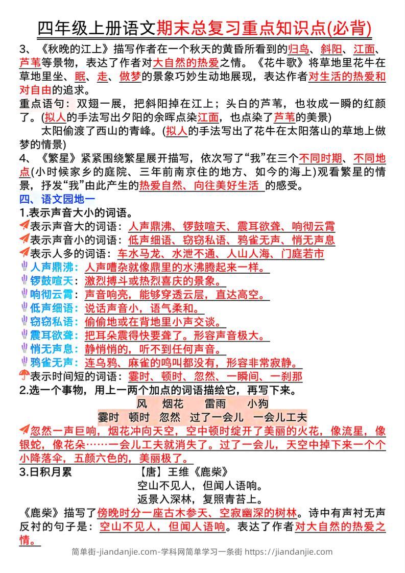 四年级上册语文期末复习重点知识点(必背)16页 简单街 3月前发布 关注 私信 010 四年级上册语文期末复习重点知识点(必背)16页此内容为付费资源,请付费后查看¥1.5黄金会员免费钻石会员免费立即购买您当前未登录!建议登陆后购买,可保存购买订单格式pdf页数16 页大小24.29 MB付费资源 ——预览已结束,还剩14页未读——开通会员后可免费下载高清完整文档 © 版权声明文章版权归作者所有,未经允许请勿转载。THE END小学语文喜欢就支持一下吧点赞0 分享收藏0