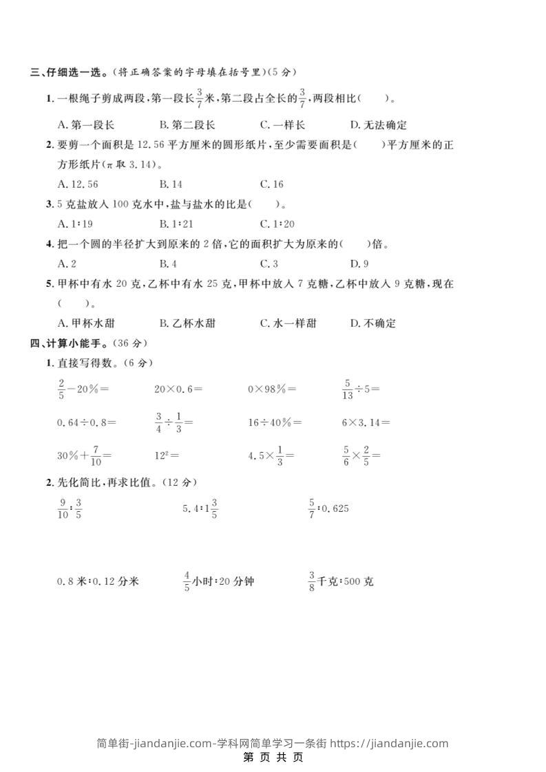六年级上数学期末拔尖测试卷5《冀教版》 简单街 27天前发布 关注 私信 000 六年级上数学期末拔尖测试卷5《冀教版》此内容为付费资源,请付费后查看¥2.7黄金会员免费钻石会员免费立即购买您当前未登录!建议登陆后购买,可保存购买订单格式pdf页数5 页大小11.88 MB付费资源 ——预览已结束,还剩3页未读——开通会员后可免费下载高清完整文档 © 版权声明文章版权归作者所有,未经允许请勿转载。THE END小学数学喜欢就支持一下吧点赞0 分享收藏0