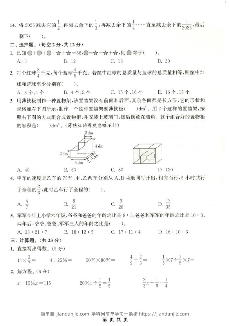 六年级上数学期末拔尖测试卷4《苏教版》 简单街 1月前发布 关注 私信 000 六年级上数学期末拔尖测试卷4《苏教版》此内容为付费资源,请付费后查看¥1.5黄金会员免费钻石会员免费立即购买您当前未登录!建议登陆后购买,可保存购买订单格式pdf页数5 页大小28.72 MB付费资源 ——预览已结束,还剩3页未读——开通会员后可免费下载高清完整文档 © 版权声明文章版权归作者所有,未经允许请勿转载。THE END小学数学喜欢就支持一下吧点赞0 分享收藏0