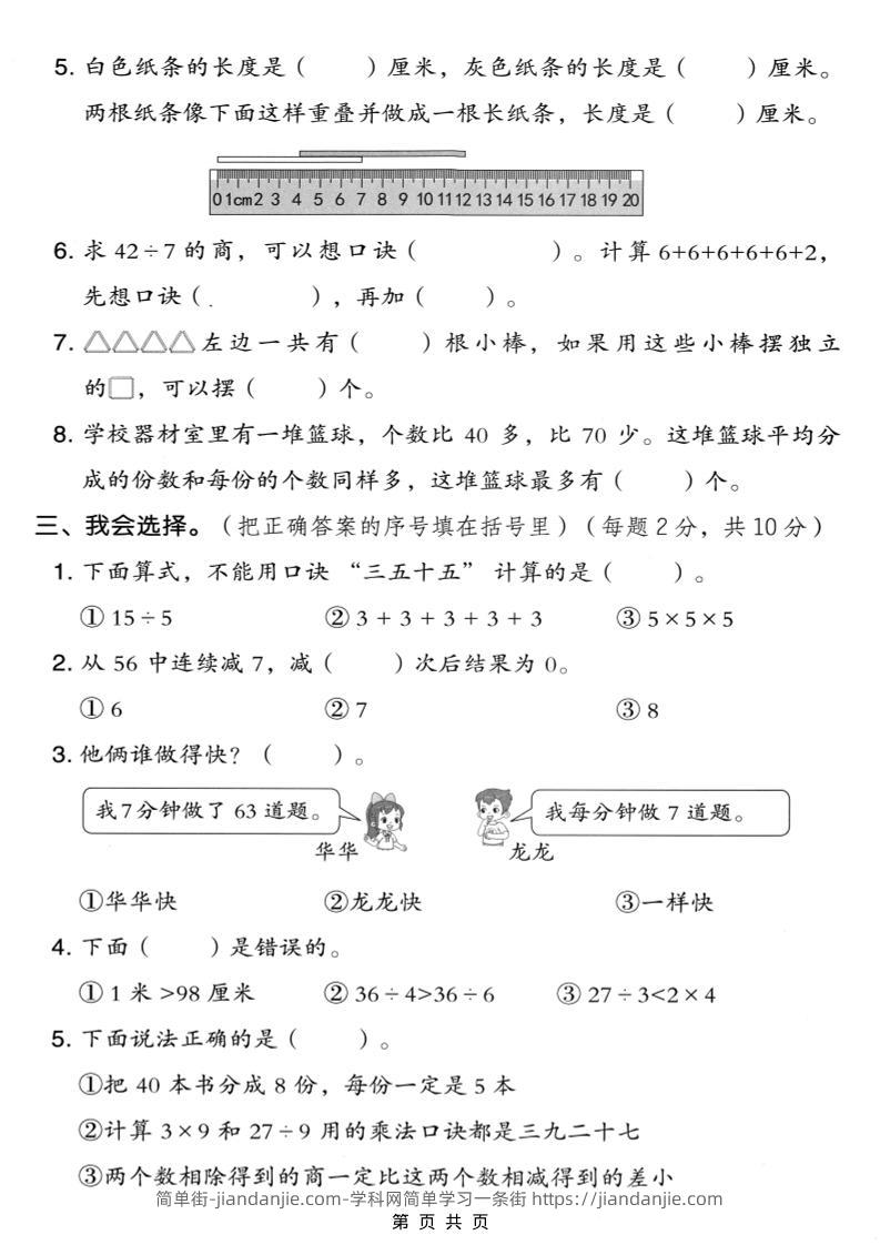 二年级上数学期末模拟测试卷4《人教版》 简单街 21天前发布 关注 私信 010 二年级上数学期末模拟测试卷4《人教版》此内容为付费资源,请付费后查看¥0.9黄金会员免费钻石会员免费立即购买您当前未登录!建议登陆后购买,可保存购买订单格式pdf页数5 页大小5.06 MB付费资源 ——预览已结束,还剩3页未读——开通会员后可免费下载高清完整文档 © 版权声明文章版权归作者所有,未经允许请勿转载。THE END小学数学喜欢就支持一下吧点赞0 分享收藏0