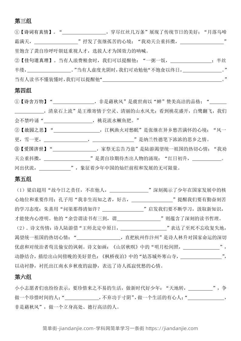 五上语文期末·情境古诗词日积月累课内理解专项 简单街 21天前发布 关注 私信 000 五上语文期末·情境古诗词日积月累课内理解专项此内容为付费资源,请付费后查看¥1.2黄金会员免费钻石会员免费立即购买您当前未登录!建议登陆后购买,可保存购买订单格式pdf页数20 页大小943.79 KB付费资源 ——预览已结束,还剩18页未读——开通会员后可免费下载高清完整文档 © 版权声明文章版权归作者所有,未经允许请勿转载。THE END小学语文喜欢就支持一下吧点赞0 分享收藏0