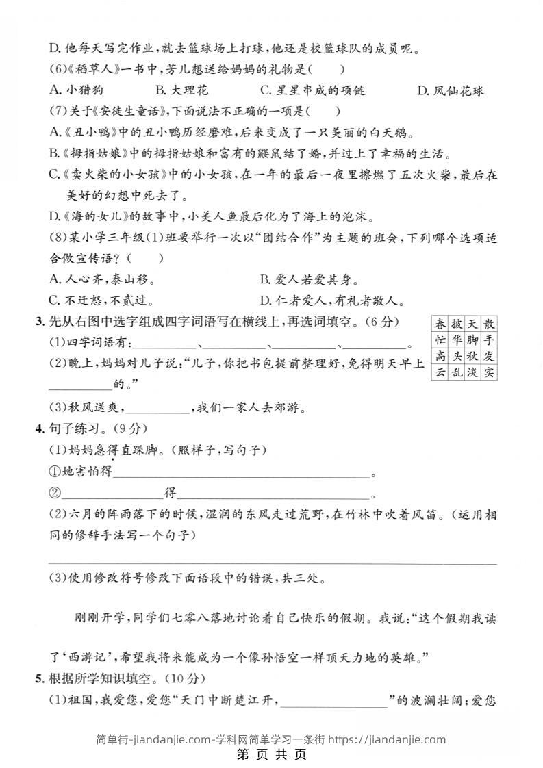 三年级上语文期末押题测试卷1 简单街 20天前发布 关注 私信 010 三年级上语文期末押题测试卷1此内容为付费资源,请付费后查看¥0.9黄金会员免费钻石会员免费立即购买您当前未登录!建议登陆后购买,可保存购买订单格式pdf页数5 页大小4.29 MB付费资源 ——预览已结束,还剩3页未读——开通会员后可免费下载高清完整文档 © 版权声明文章版权归作者所有,未经允许请勿转载。THE END小学语文喜欢就支持一下吧点赞0 分享收藏0