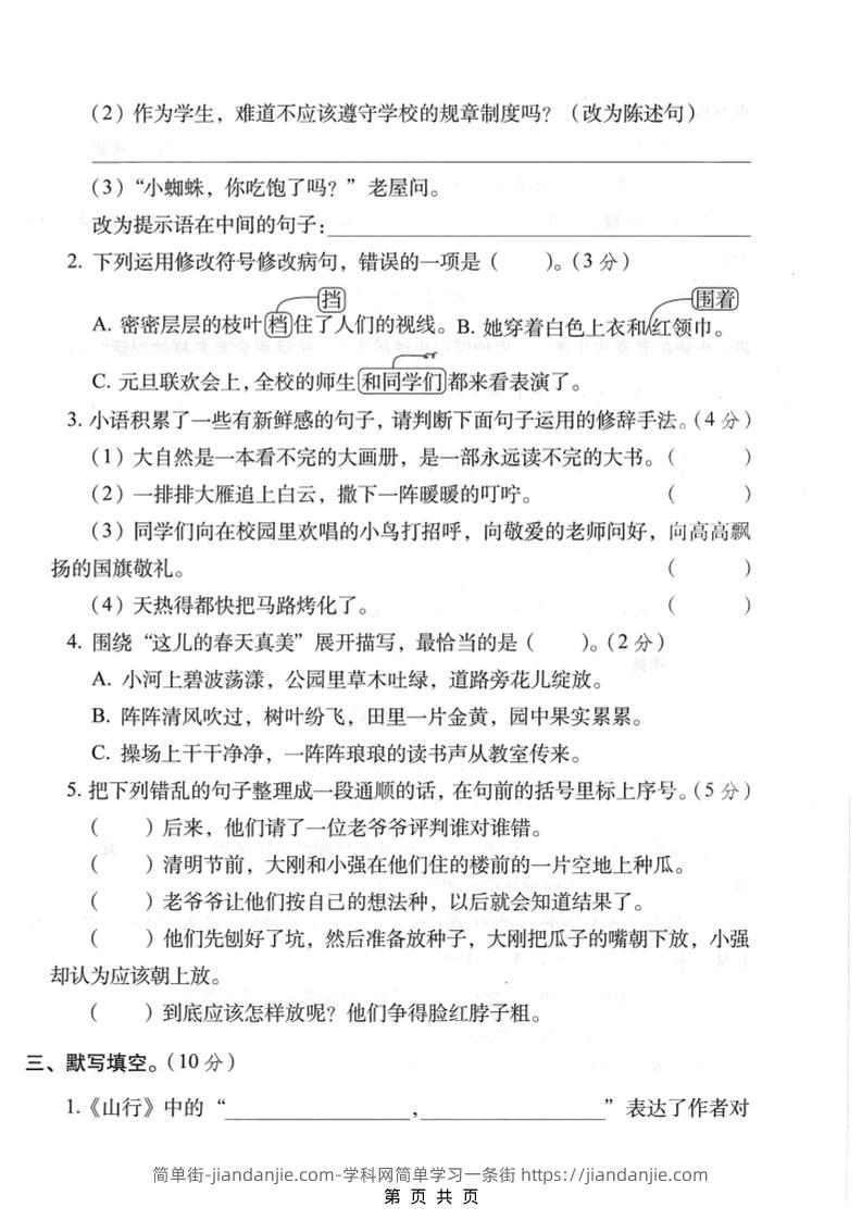 三年级上语文期末拔尖测试卷1 简单街 16天前发布 关注 私信 010 三年级上语文期末拔尖测试卷1此内容为付费资源,请付费后查看¥1.2黄金会员免费钻石会员免费立即购买您当前未登录!建议登陆后购买,可保存购买订单格式pdf页数5 页大小2.86 MB付费资源 ——预览已结束,还剩3页未读——开通会员后可免费下载高清完整文档 © 版权声明文章版权归作者所有,未经允许请勿转载。THE END小学语文喜欢就支持一下吧点赞0 分享收藏0