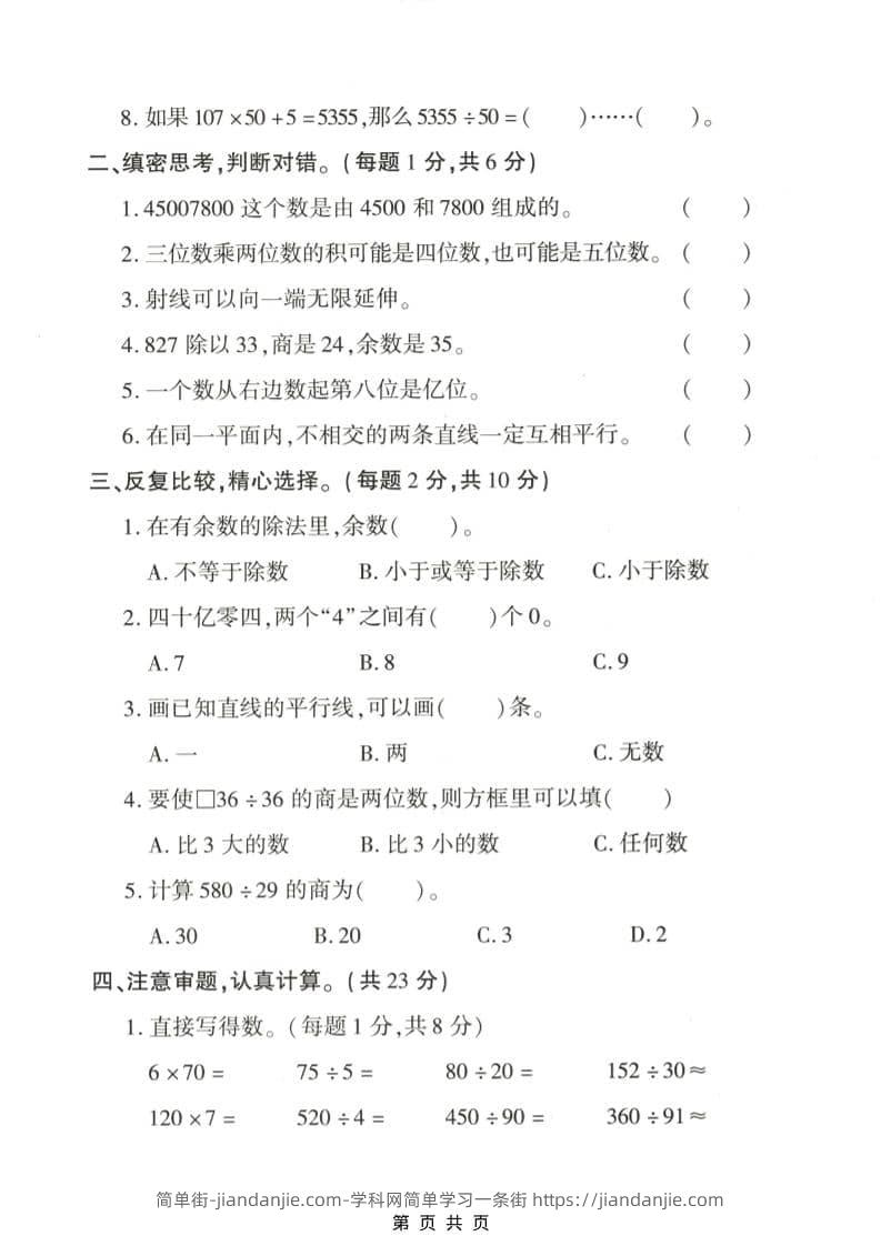 四年级上数学期末拔尖测试卷5《青岛63版》 简单街 17天前发布 关注 私信 000 四年级上数学期末拔尖测试卷5《青岛63版》此内容为付费资源,请付费后查看¥1.2黄金会员免费钻石会员免费立即购买您当前未登录!建议登陆后购买,可保存购买订单格式pdf页数5 页大小1.91 MB付费资源 ——预览已结束,还剩3页未读——开通会员后可免费下载高清完整文档 © 版权声明文章版权归作者所有,未经允许请勿转载。THE END小学数学喜欢就支持一下吧点赞0 分享收藏0
