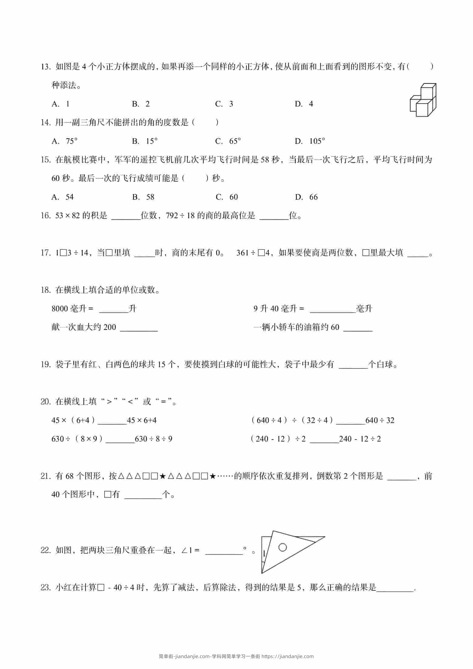 四年级上数学期末重点易错真题练习 简单街 17天前发布 关注 私信 000 四年级上数学期末重点易错真题练习此内容为付费资源,请付费后查看¥0.9黄金会员免费钻石会员免费立即购买您当前未登录!建议登陆后购买,可保存购买订单格式pdf页数9 页大小4.64 MB付费资源 ——预览已结束,还剩7页未读——开通会员后可免费下载高清完整文档 © 版权声明文章版权归作者所有,未经允许请勿转载。THE END小学数学喜欢就支持一下吧点赞0 分享收藏0