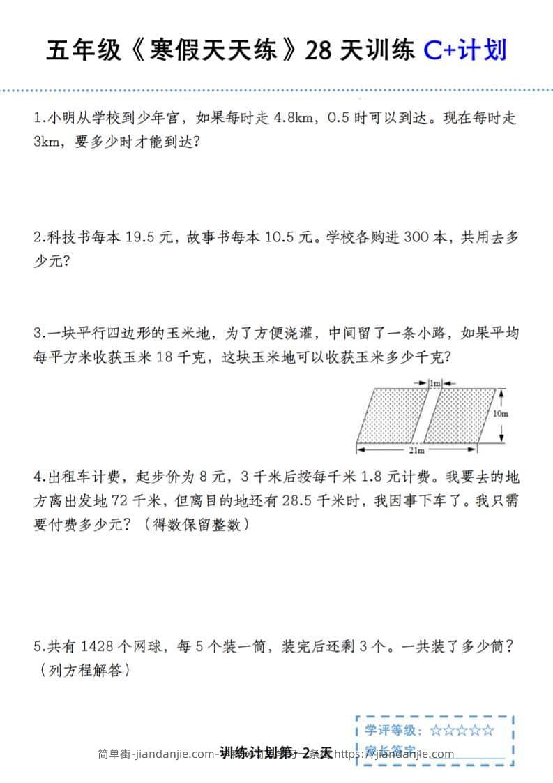 五年级上数学寒假天天练28天训练C+计划 简单街 16天前发布 关注 私信 000 五年级上数学寒假天天练28天训练C+计划此内容为付费资源,请付费后查看¥1.5黄金会员免费钻石会员免费立即购买您当前未登录!建议登陆后购买,可保存购买订单格式pdf页数51 页大小16.67 MB付费资源 ——预览已结束,还剩49页未读——开通会员后可免费下载高清完整文档 © 版权声明文章版权归作者所有,未经允许请勿转载。THE END小学数学喜欢就支持一下吧点赞0 分享收藏0