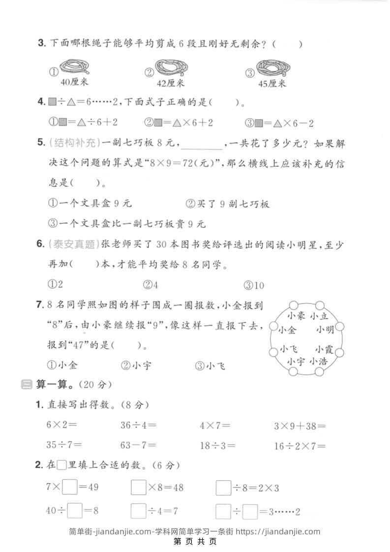 二年级上数学期末拔尖测试卷5《青岛54版》 简单街 1月前发布 关注 私信 000 二年级上数学期末拔尖测试卷5《青岛54版》此内容为付费资源,请付费后查看¥0.9黄金会员免费钻石会员免费立即购买您当前未登录!建议登陆后购买,可保存购买订单格式pdf页数5 页大小2.67 MB付费资源 ——预览已结束,还剩3页未读——开通会员后可免费下载高清完整文档 © 版权声明文章版权归作者所有,未经允许请勿转载。THE END小学数学喜欢就支持一下吧点赞0 分享收藏0
