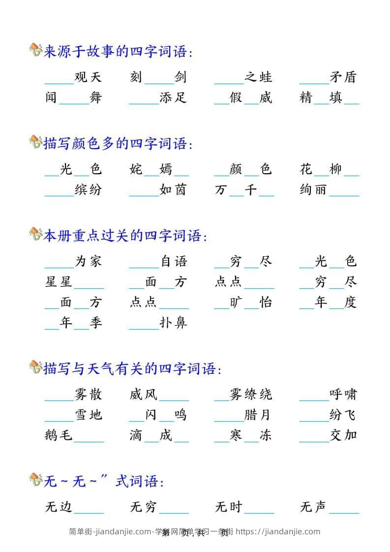 二年级上语文期末复习四字成语专项练习 简单街 10天前发布 关注 私信 000 二年级上语文期末复习四字成语专项练习此内容为付费资源,请付费后查看¥1.5黄金会员免费钻石会员免费立即购买您当前未登录!建议登陆后购买,可保存购买订单格式pdf页数22 页大小458.42 KB付费资源 ——预览已结束,还剩20页未读——开通会员后可免费下载高清完整文档 © 版权声明文章版权归作者所有,未经允许请勿转载。THE END小学语文喜欢就支持一下吧点赞0 分享收藏0