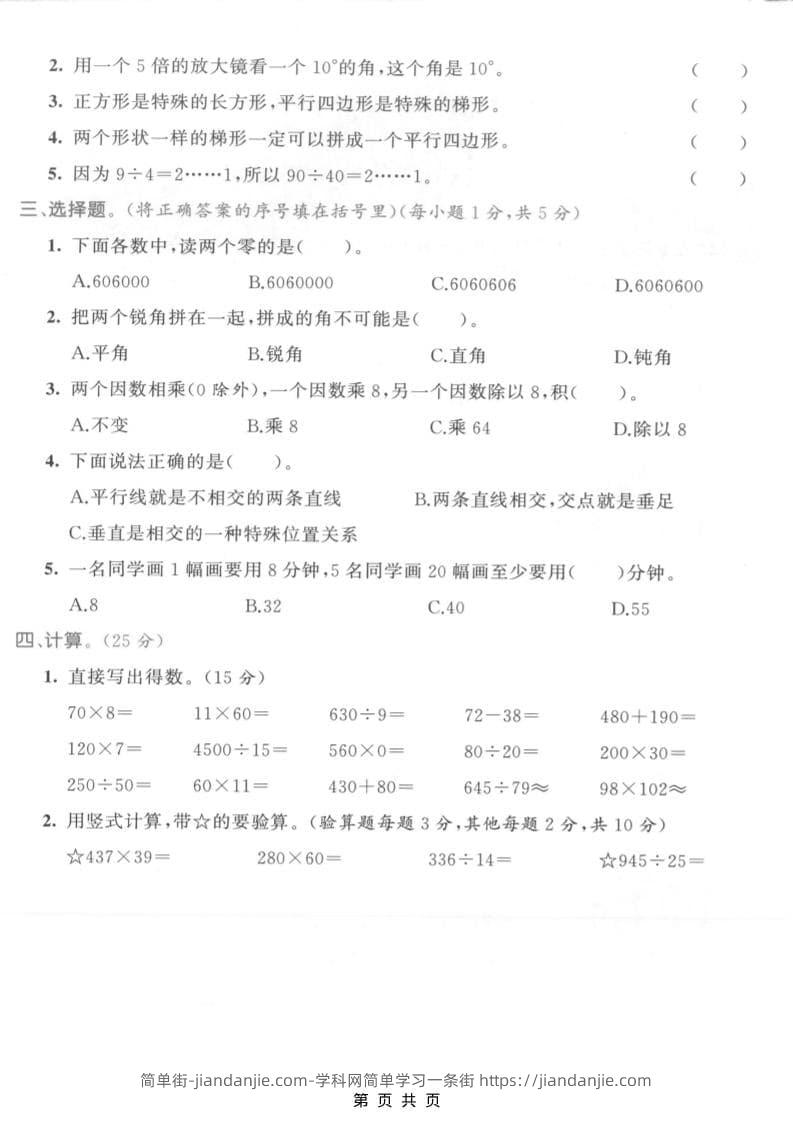 四年级上数学期末拔尖测试卷1《人教版》 简单街 11天前发布 关注 私信 010 四年级上数学期末拔尖测试卷1《人教版》此内容为付费资源,请付费后查看¥0.9黄金会员免费钻石会员免费立即购买您当前未登录!建议登陆后购买,可保存购买订单格式pdf页数5 页大小3.16 MB付费资源 ——预览已结束,还剩3页未读——开通会员后可免费下载高清完整文档 © 版权声明文章版权归作者所有,未经允许请勿转载。THE END小学数学喜欢就支持一下吧点赞0 分享收藏0