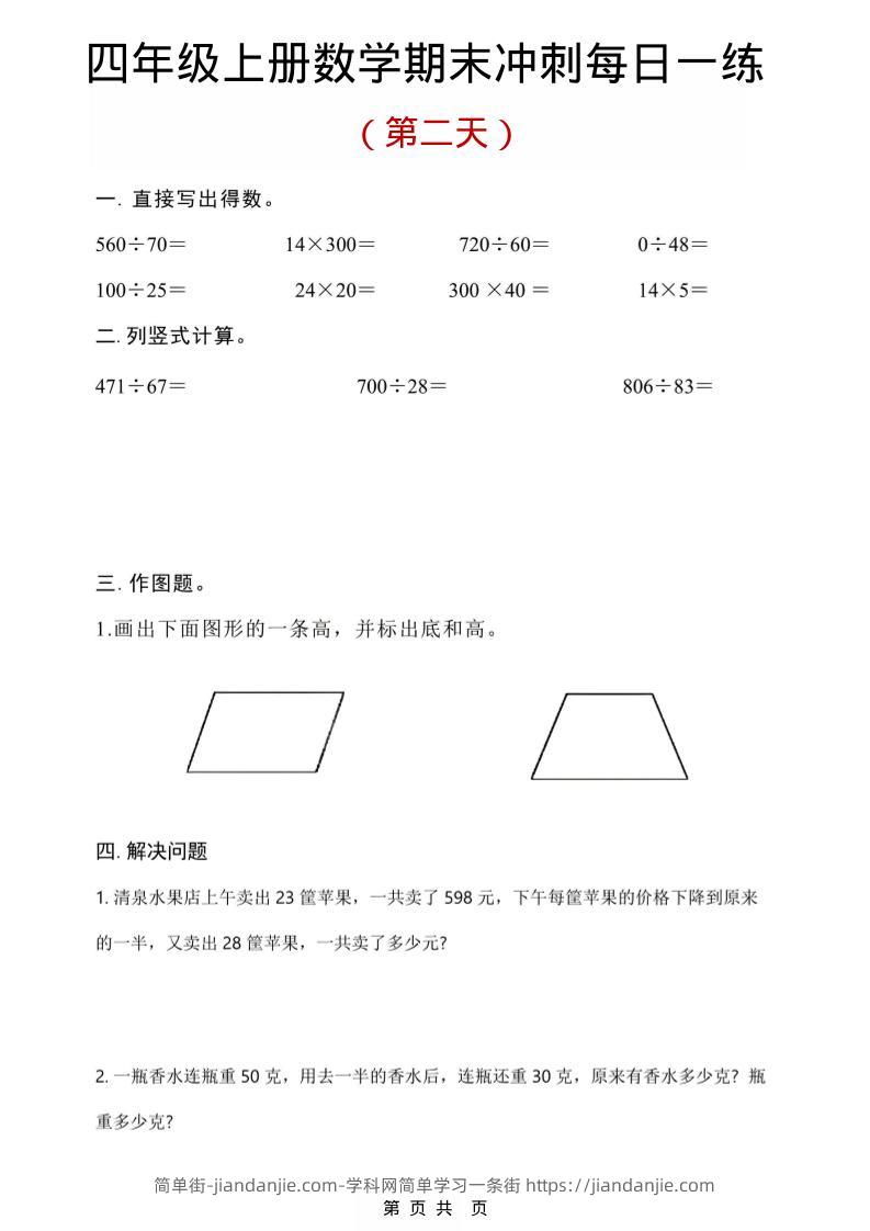 四年级上数学期末冲刺每日一练 简单街 10天前发布 关注 私信 000 四年级上数学期末冲刺每日一练此内容为付费资源,请付费后查看¥0.9黄金会员免费钻石会员免费立即购买您当前未登录!建议登陆后购买,可保存购买订单格式pdf页数15 页大小6.60 MB付费资源 ——预览已结束,还剩13页未读——开通会员后可免费下载高清完整文档 © 版权声明文章版权归作者所有,未经允许请勿转载。THE END小学数学喜欢就支持一下吧点赞0 分享收藏0