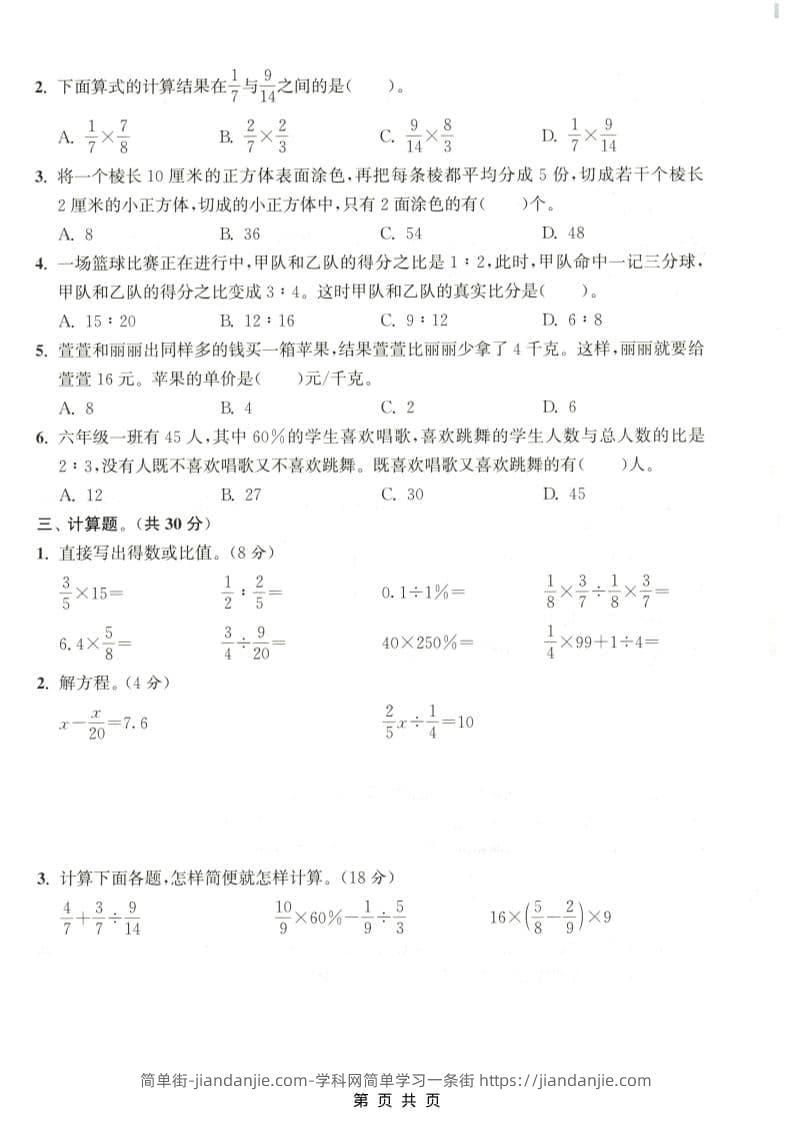六年级上数学期末测试卷3《苏教版》 简单街 4天前发布 关注 私信 010 六年级上数学期末测试卷3《苏教版》此内容为付费资源,请付费后查看¥0.9黄金会员免费钻石会员免费立即购买您当前未登录!建议登陆后购买,可保存购买订单格式pdf页数5 页大小1.73 MB付费资源 ——预览已结束,还剩3页未读——开通会员后可免费下载高清完整文档 © 版权声明文章版权归作者所有,未经允许请勿转载。THE END小学数学喜欢就支持一下吧点赞0 分享收藏0