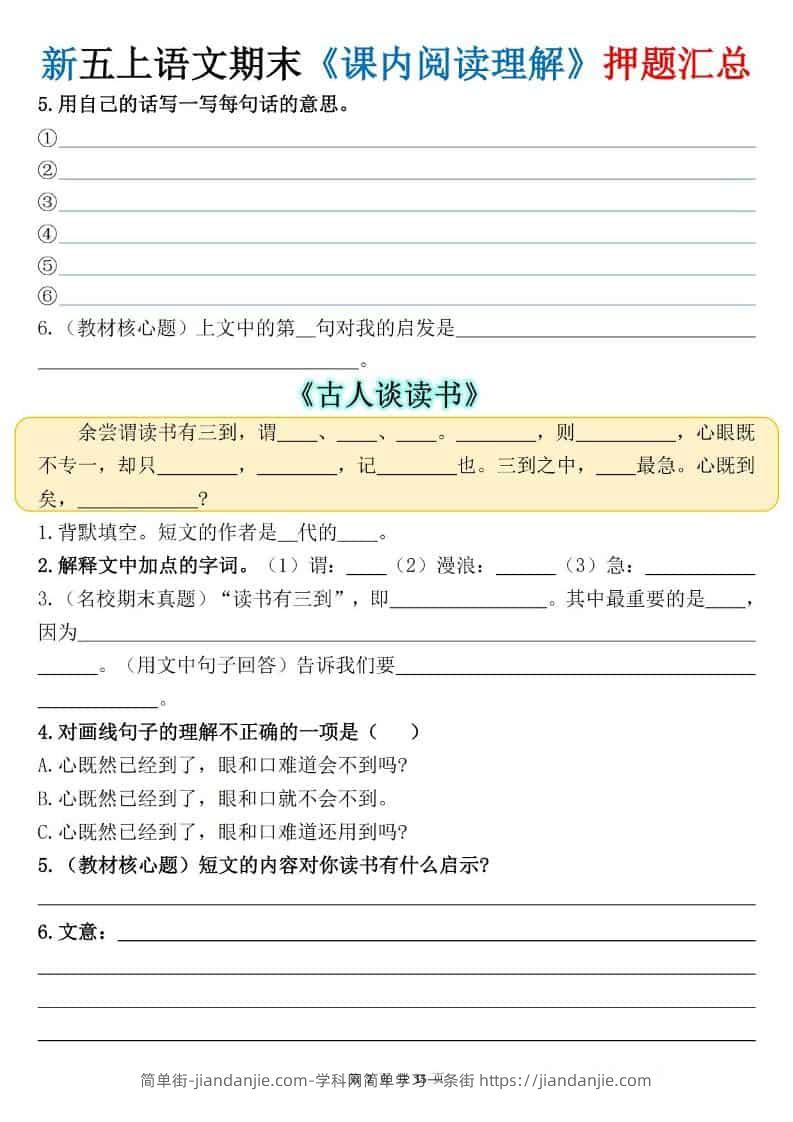 新五上语文期末《课内阅读理解》押题汇总 简单街 3天前发布 关注 私信 010 新五上语文期末《课内阅读理解》押题汇总此内容为付费资源,请付费后查看¥2.7黄金会员免费钻石会员免费立即购买您当前未登录!建议登陆后购买,可保存购买订单格式pdf页数30 页大小7.20 MB付费资源 ——预览已结束,还剩28页未读——开通会员后可免费下载高清完整文档 © 版权声明文章版权归作者所有,未经允许请勿转载。THE END小学语文喜欢就支持一下吧点赞0 分享收藏0