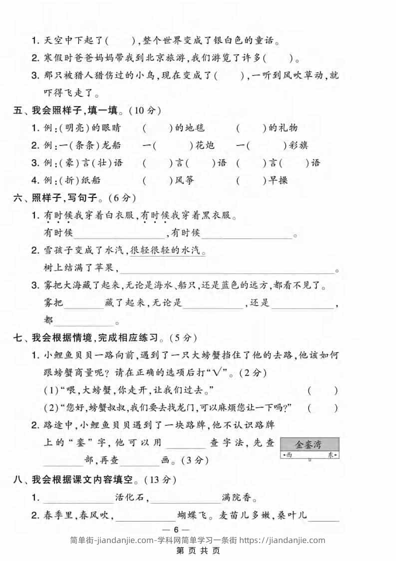 二年级上语文期末情景测试卷3 简单街 昨天发布 关注 私信 010 二年级上语文期末情景测试卷3此内容为付费资源,请付费后查看¥2.7黄金会员免费钻石会员免费立即购买您当前未登录!建议登陆后购买,可保存购买订单格式pdf页数5 页大小363.68 KB付费资源 ——预览已结束,还剩3页未读——开通会员后可免费下载高清完整文档 © 版权声明文章版权归作者所有,未经允许请勿转载。THE END小学语文喜欢就支持一下吧点赞0 分享收藏0