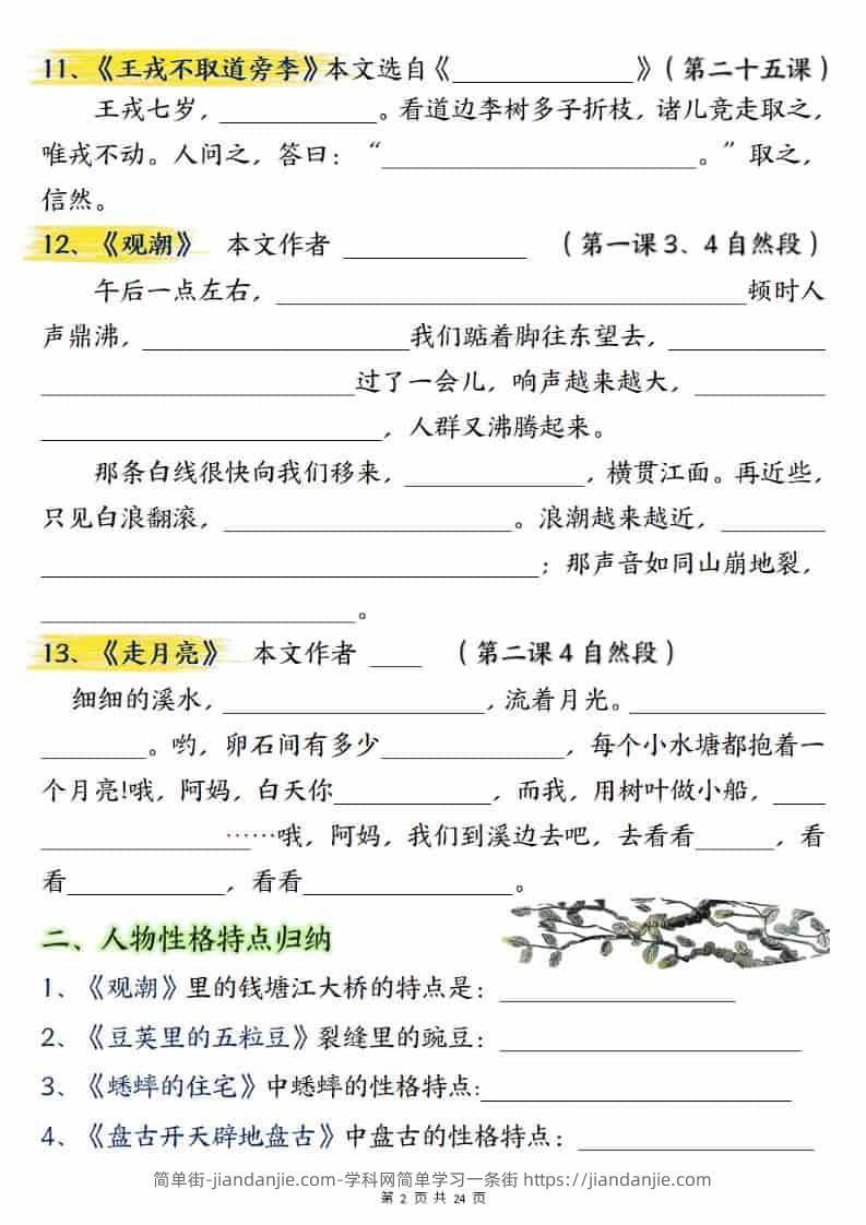 四上语文期末总复习重点知识点归纳整理(含答案48页) 简单街 2月前发布 关注 私信 030 四上语文期末总复习重点知识点归纳整理(含答案48页)此内容为付费资源,请付费后查看¥2.7黄金会员免费钻石会员免费立即购买您当前未登录!建议登陆后购买,可保存购买订单格式pdf页数48 页大小12.32 MB付费资源 ——预览已结束,还剩46页未读——开通会员后可免费下载高清完整文档 © 版权声明文章版权归作者所有,未经允许请勿转载。THE END小学语文喜欢就支持一下吧点赞0 分享收藏0