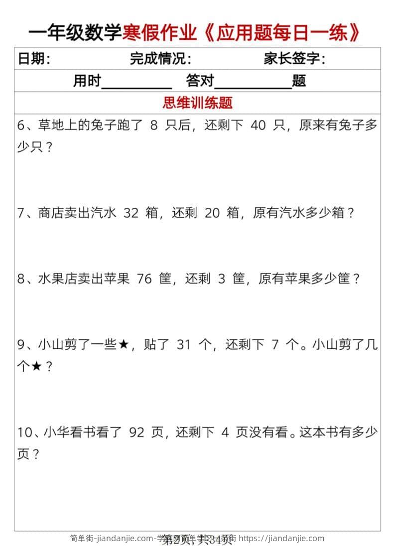 一年级上数学寒假作业《应用题每日一练》34页 简单街 4小时前发布 关注 私信 000 一年级上数学寒假作业《应用题每日一练》34页此内容为付费资源,请付费后查看¥1.2黄金会员免费钻石会员免费立即购买您当前未登录!建议登陆后购买,可保存购买订单格式pdf页数34 页大小25.70 MB付费资源 ——预览已结束,还剩32页未读——开通会员后可免费下载高清完整文档 © 版权声明文章版权归作者所有,未经允许请勿转载。THE END小学数学喜欢就支持一下吧点赞0 分享收藏0