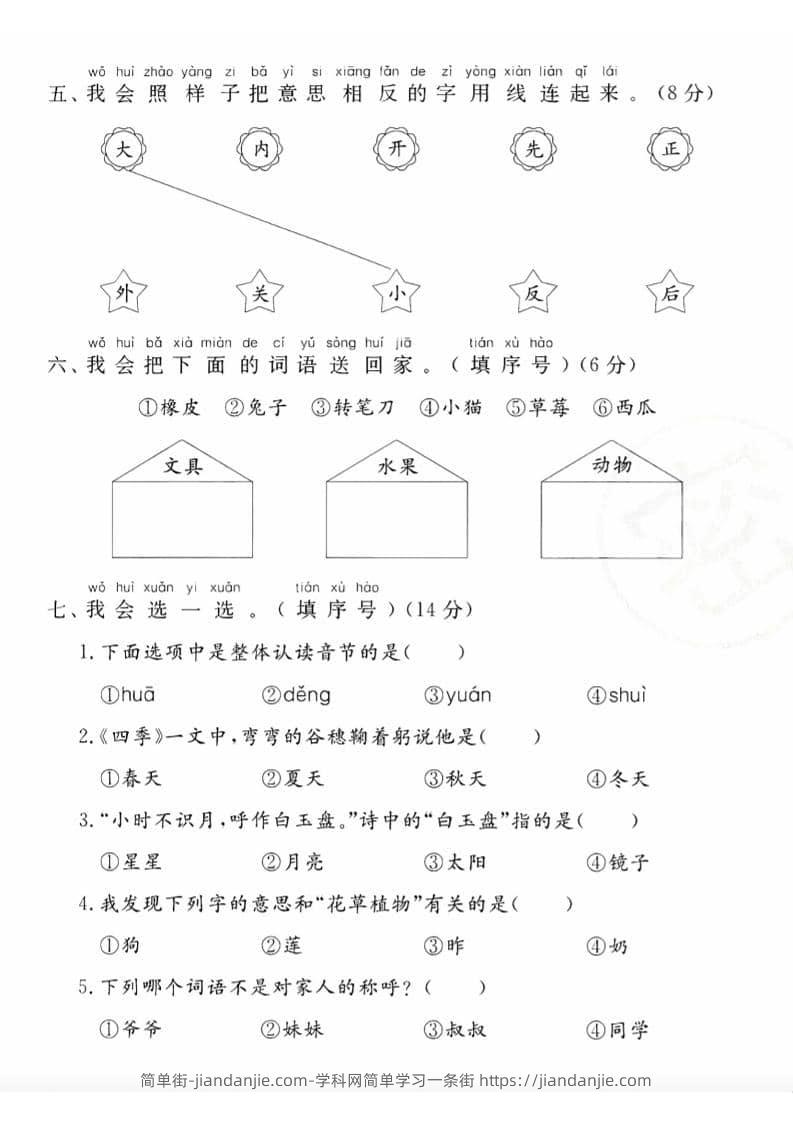 一年级上语文期末综合测试卷 简单街 7小时前发布 关注 私信 010 一年级上语文期末综合测试卷此内容为付费资源,请付费后查看¥1.5黄金会员免费钻石会员免费立即购买您当前未登录!建议登陆后购买,可保存购买订单格式pdf页数4 页大小3.01 MB付费资源 ——预览已结束,还剩2页未读——开通会员后可免费下载高清完整文档 © 版权声明文章版权归作者所有,未经允许请勿转载。THE END小学语文喜欢就支持一下吧点赞0 分享收藏0