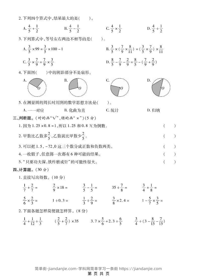 六年级上数学期末测试卷2《西师版》 简单街 9小时前发布 关注 私信 010 六年级上数学期末测试卷2《西师版》此内容为付费资源,请付费后查看¥1.5黄金会员免费钻石会员免费立即购买您当前未登录!建议登陆后购买,可保存购买订单格式pdf页数5 页大小3.18 MB付费资源 ——预览已结束,还剩3页未读——开通会员后可免费下载高清完整文档 © 版权声明文章版权归作者所有,未经允许请勿转载。THE END小学数学喜欢就支持一下吧点赞0 分享收藏0