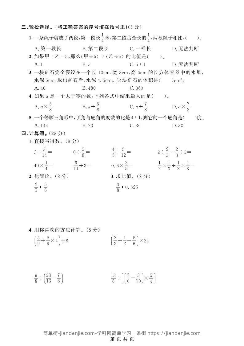 五年级上数学期末测试卷2《青岛54版》 简单街 3天前发布 关注 私信 010 五年级上数学期末测试卷2《青岛54版》此内容为付费资源,请付费后查看¥0.9黄金会员免费钻石会员免费立即购买您当前未登录!建议登陆后购买,可保存购买订单格式pdf页数5 页大小3.12 MB付费资源 ——预览已结束,还剩3页未读——开通会员后可免费下载高清完整文档 © 版权声明文章版权归作者所有,未经允许请勿转载。THE END小学数学喜欢就支持一下吧点赞0 分享收藏0