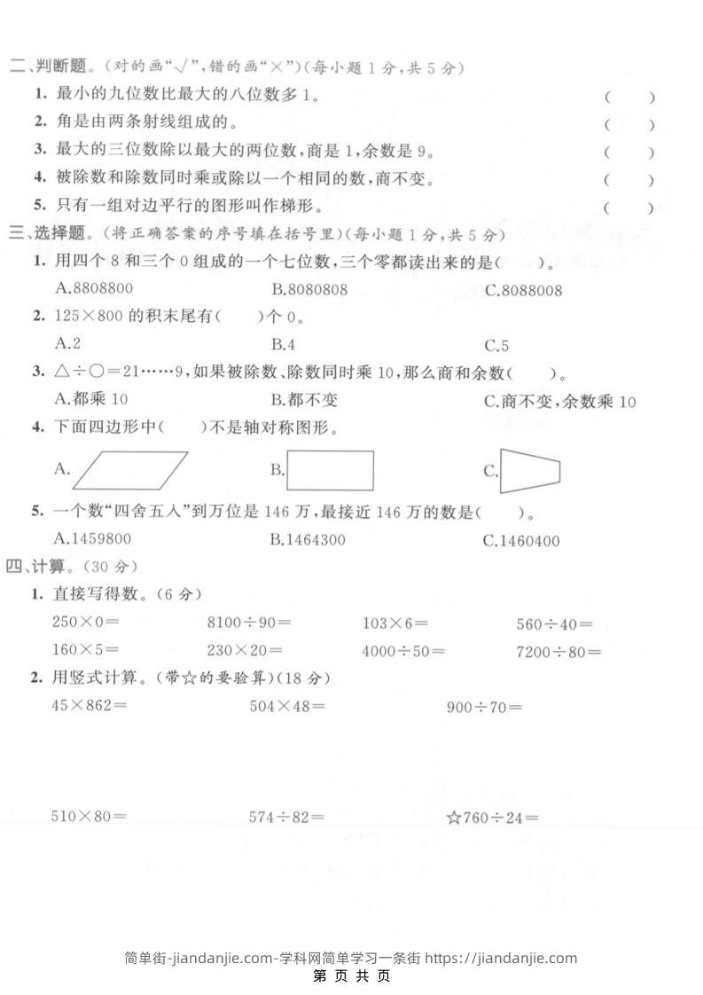 四年级上数学期末测试卷《人教版》 简单街 3天前发布 关注 私信 010 四年级上数学期末测试卷《人教版》此内容为付费资源,请付费后查看¥1.5黄金会员免费钻石会员免费立即购买您当前未登录!建议登陆后购买,可保存购买订单格式pdf页数5 页大小3.57 MB付费资源 ——预览已结束,还剩3页未读——开通会员后可免费下载高清完整文档 © 版权声明文章版权归作者所有,未经允许请勿转载。THE END小学数学喜欢就支持一下吧点赞0 分享收藏0