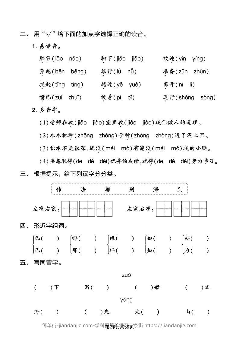 二年级上语文1-8单元基础知识练习 简单街 昨天发布 关注 私信 010 二年级上语文1-8单元基础知识练习此内容为付费资源,请付费后查看¥0.9黄金会员免费钻石会员免费立即购买您当前未登录!建议登陆后购买,可保存购买订单格式pdf页数38 页大小6.64 MB付费资源 ——预览已结束,还剩36页未读——开通会员后可免费下载高清完整文档 © 版权声明文章版权归作者所有,未经允许请勿转载。THE END小学语文喜欢就支持一下吧点赞0 分享收藏0