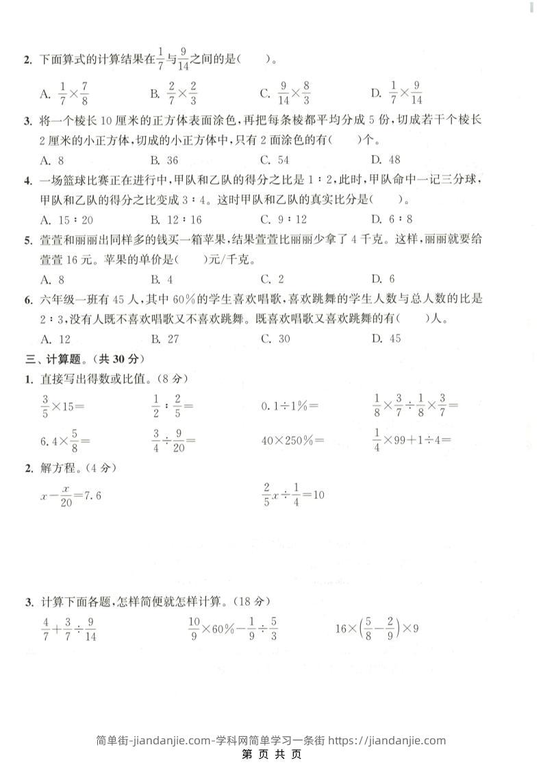 六年级上数学期末拔尖测试卷《苏教版》 简单街 昨天发布 关注 私信 010 六年级上数学期末拔尖测试卷《苏教版》此内容为付费资源,请付费后查看¥1.5黄金会员免费钻石会员免费立即购买您当前未登录!建议登陆后购买,可保存购买订单格式pdf页数5 页大小1.73 MB付费资源 ——预览已结束,还剩3页未读——开通会员后可免费下载高清完整文档 © 版权声明文章版权归作者所有,未经允许请勿转载。THE END小学数学喜欢就支持一下吧点赞0 分享收藏0