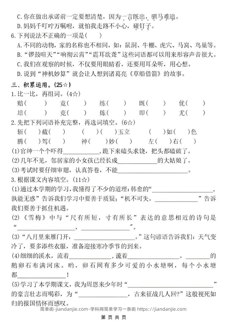 四年级上语文期末名校真题测试卷2 简单街 1月前发布 关注 私信 020 四年级上语文期末名校真题测试卷2此内容为付费资源,请付费后查看¥1.2黄金会员免费钻石会员免费立即购买您当前未登录!建议登陆后购买,可保存购买订单格式pdf页数6 页大小2.78 MB付费资源 ——预览已结束,还剩4页未读——开通会员后可免费下载高清完整文档 © 版权声明文章版权归作者所有,未经允许请勿转载。THE END小学语文喜欢就支持一下吧点赞0 分享收藏0